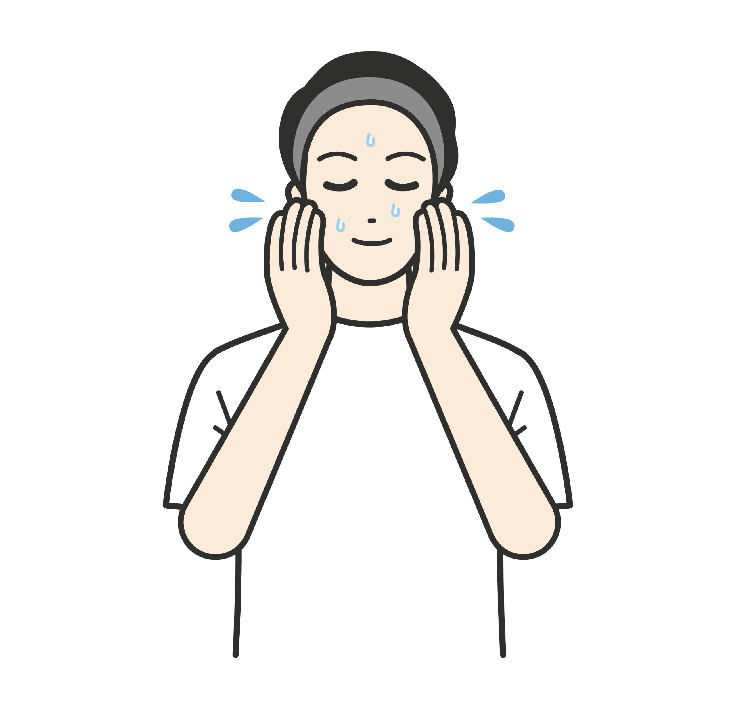 - 洗顔は朝晩2回、ぬるま湯で優しく洗う。手ですすぐ場合は、20~30回は行いましょう。