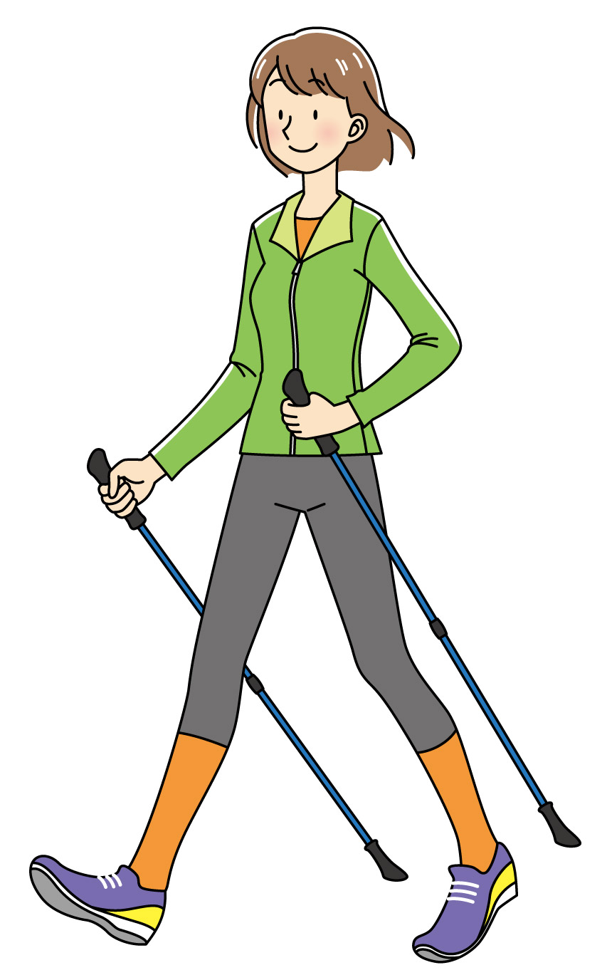 当店では、肩こりの予防に、二本の杖を使って歩く「ノルディックウォーク」のお話もしています。